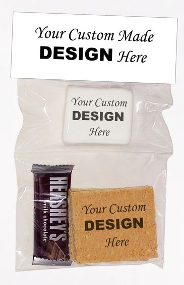Custom printed marshmallows and graham crackers. Custom packaging.