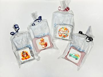 Large S'mores Soft and fluffy printed marshmallows. Each marshmallow is custom printed with a coordinating design. *Customization available (ie. variation on design/name) Bags are tied with a curling ribbon on top with a twist tie.